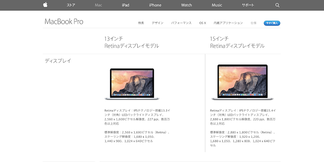 MAcbook Pro15インチRetinaディスプレモデルを使用しています。