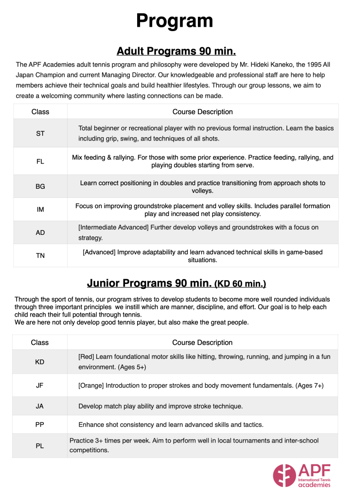 - 初心者でも安心!一般レッスンからプロ選手コースまで充実。バンコク最大のテニスクラブ、APF Academies。