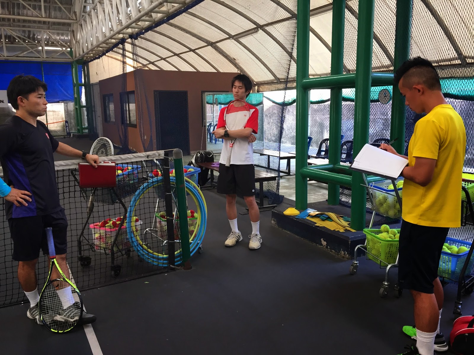 皆様の上達を助けるにはどういうコーチングが良いのか?最善なのか?コート上でディスカッションした後、コーチとしては基本ですが球出しのリズムなど細かい事を確認しました。 このようなコーチングスキルをつけるだけでなく、定期的に確認し継続する事が大切だとAPF ACADEMIESは考えております。