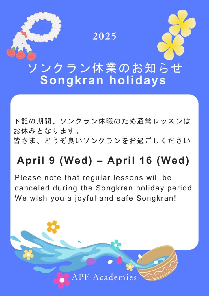 ソンクラン休暇のお知らせ 皆さん良いソンクランをお過ごし下さい!