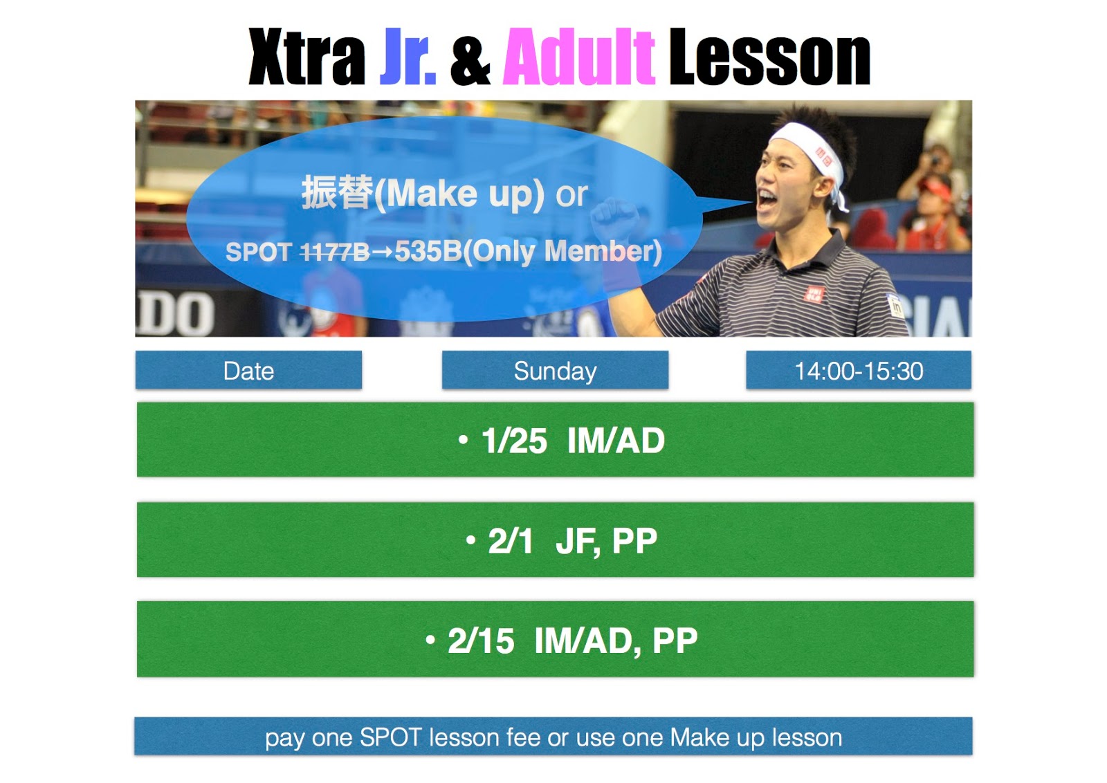 1月、2月の日曜日、エクストラレッスンのお知らせです。