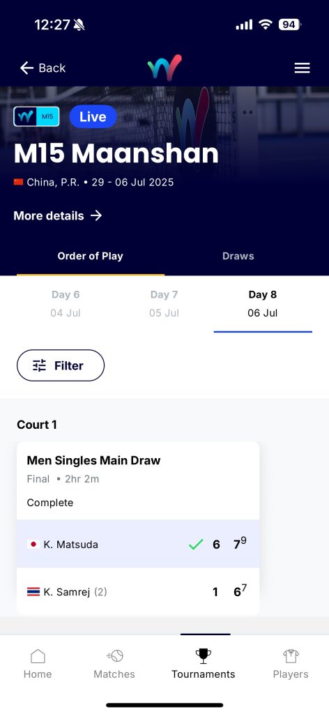 APFの卒業生で、プロ3年目の松田康希選手が2025年の7月6日にシングルスで、ITFツアー初優勝しました。