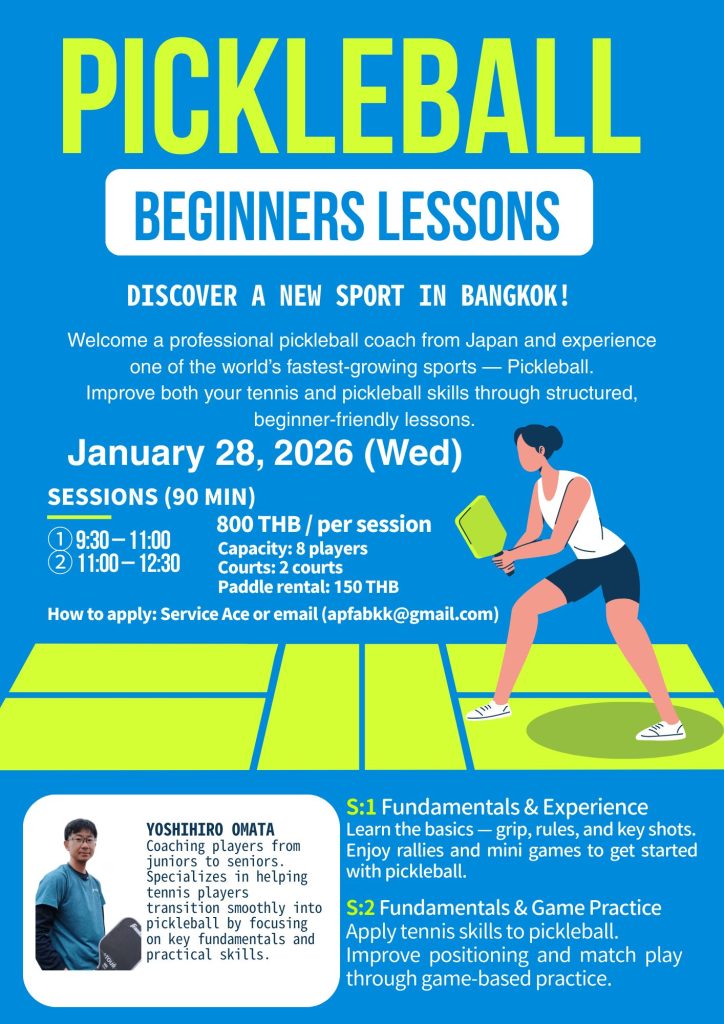 - Pickleball Event in Bangkok – Beginner Friendly!|Saturday, January 17 at APF Academies 2025年12月12日