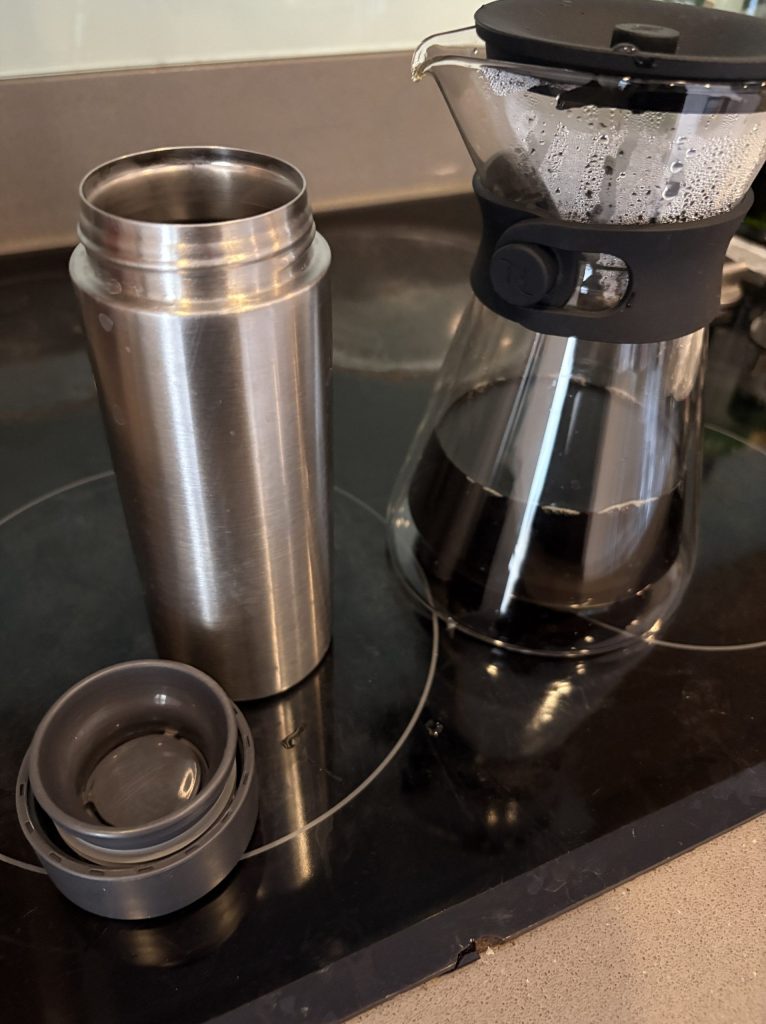 淹れたコーヒーは、無印のマイボトルに移しています。