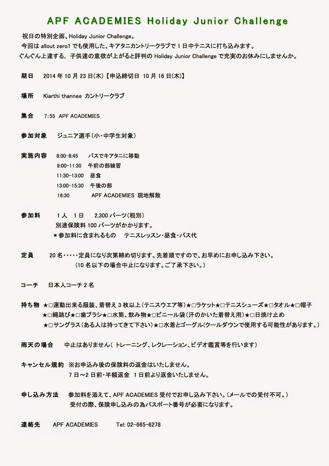 | 10/23 Holiday Junior Challenge インフォメーション |