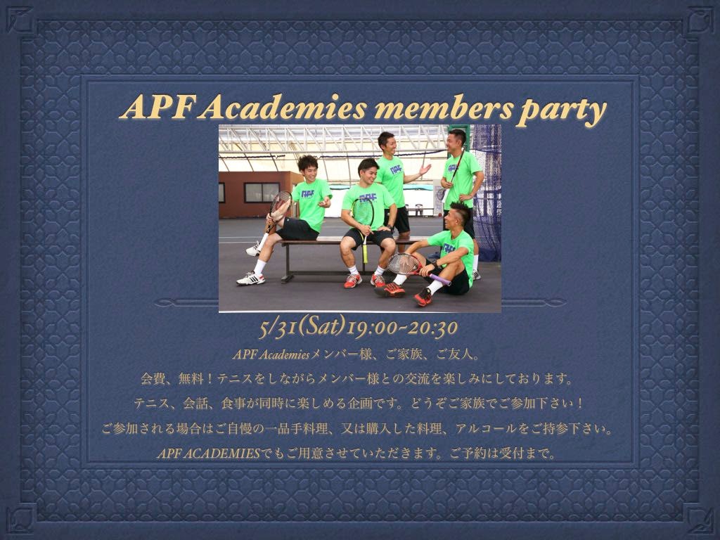 会費 無料 対象 APF ACADEMIESをご利用頂いてる方、及びご友人、ご家族の方。(お 子様も大歓迎)