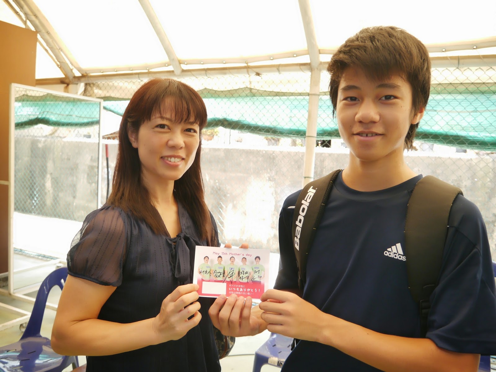 いつもAPF ACADEMIESをご利用して下さっているご家族の写真です。中学3年生で母に感謝の気持ちを伝える事は大変恥ずかしいとは思いますが、このようにしてメッセージをしっかり伝えられる人間に成長してもらいたいです。立派ですね!2人ともにAPF ACADEMIESに初心者でご入会されましたが、熱心にイベントや、集中コースに参加してコーチ陣が驚くほど上達をしております。2人ともにAPF ACADEMIESでテニスを始めたとすぐわかる奇麗なフォームで打つ事ができます。スタッフ一同テニスを通じてご家族の共通の趣味、会話を持つ事によりバンコク生活がより充実するようにお手伝いさせていただきます!