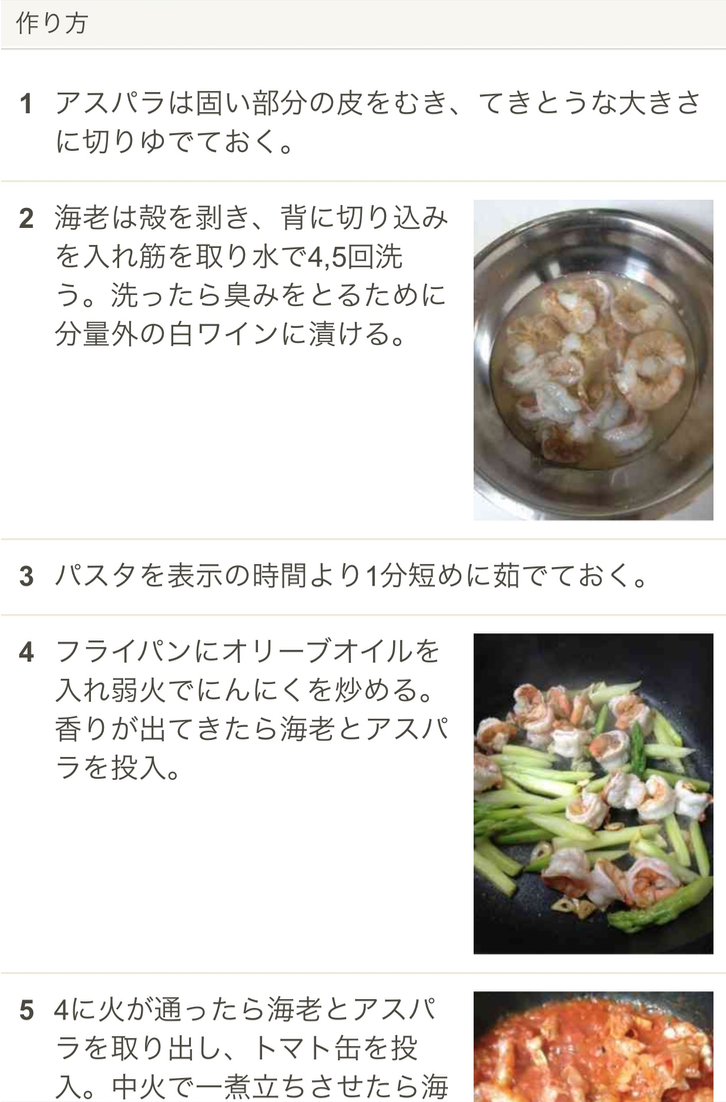 私のイチオシ、定番料理の、「海老とアスパラのトマトクリームパスタ」